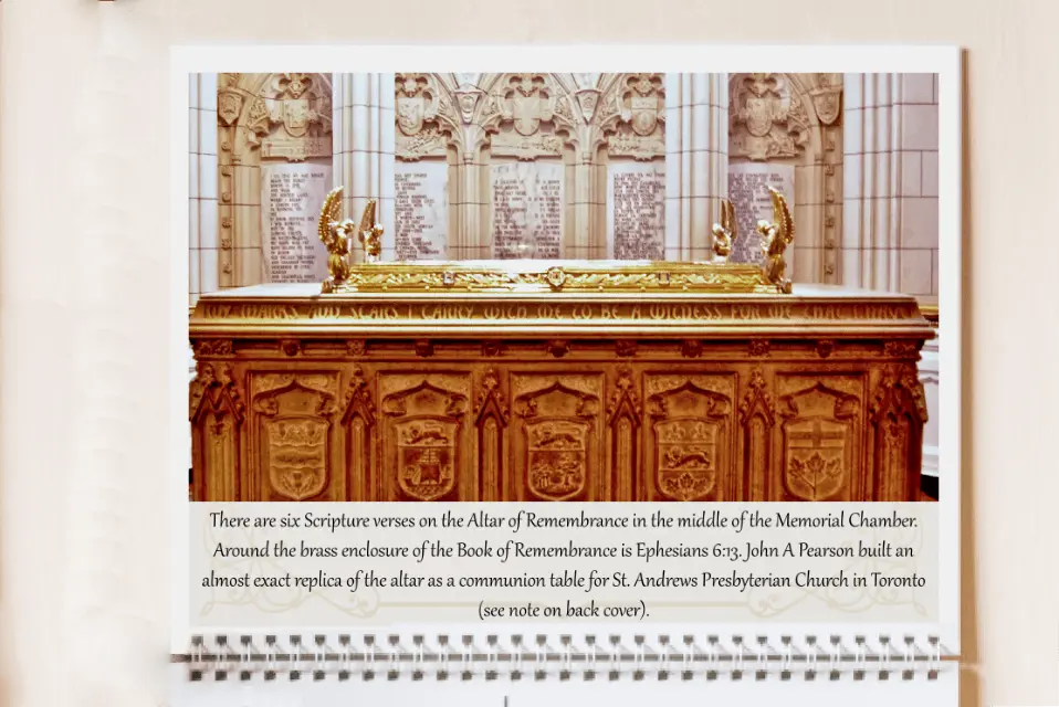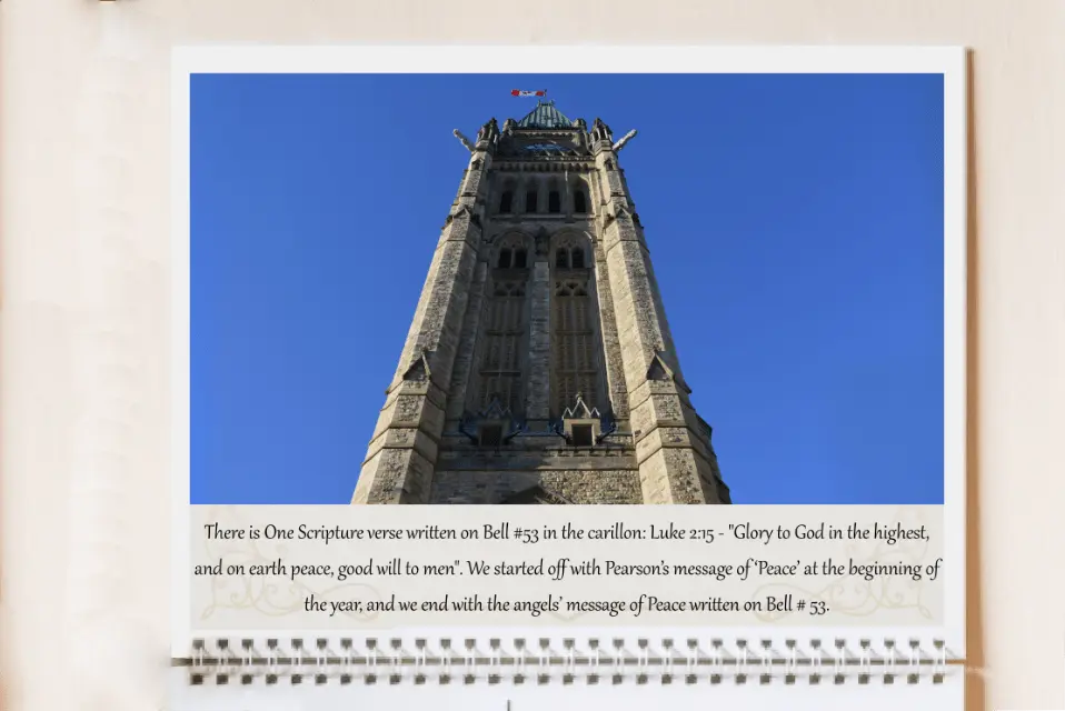 LIMITED EDITION 2023 calendar which showcases over 15 of the 25 Scripture verses found in the Peace Tower of Parliament Hill